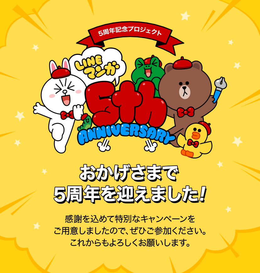 LINEマンガ5周年 ありがとうスタンプ配布!