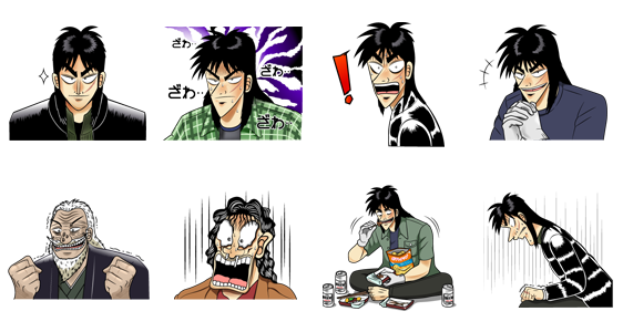 人気マンガ「カイジ」のスタンプが遂に登場!LINEマンガで「カイジ」シリーズのコミックどれでも1冊買うとスタンプもらえるよ♪