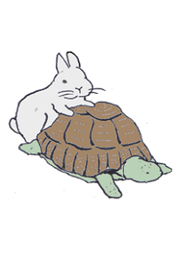 普通のうさぎとかめのサイレント4コマ漫画。