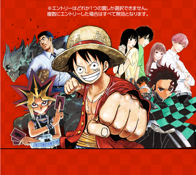 ・賞品の交換、換金、返品、オークション等への出品、及び当選権利の譲渡はできません。禁止行為が判明した場合、しかるべき措置を取らせていただきます。また特賞およびギフトカタログ賞については、利用に際しての有効期限を過ぎた場合、集英社では換金、補填等の対応は一切いたしません。