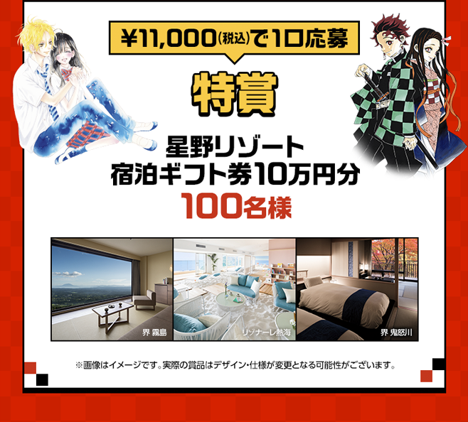 ※日本全国の星野リゾートの宿泊施設で使用可能(有効期間:発行日より1年間 ※発行日は抽選後に確定する予定です。発行日からお届けまで1-2週間を予定)