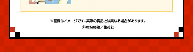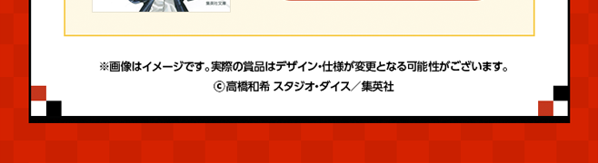 ・発送後にお客様のご都合により賞品をお受け取りいただけなかった場合や、置き配サービス等の利用に伴う紛失・盗難につきましては、集英社では責任を負いかねます。なお、再送・再発行の対応はいたしかねます。