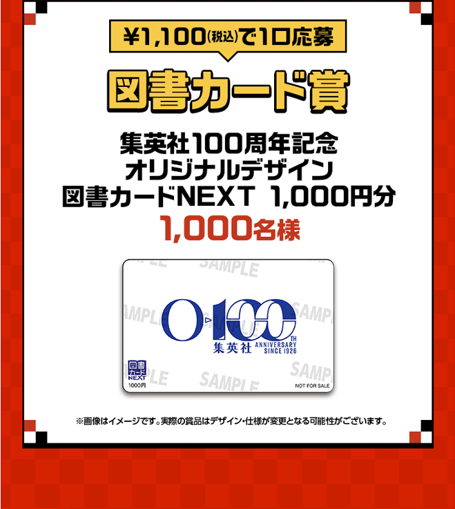 A.「集英社100周年記念 オリジナルデザイン図書カードNEXT」については、「日本図書普及株式会社」サイトをご参照ください。